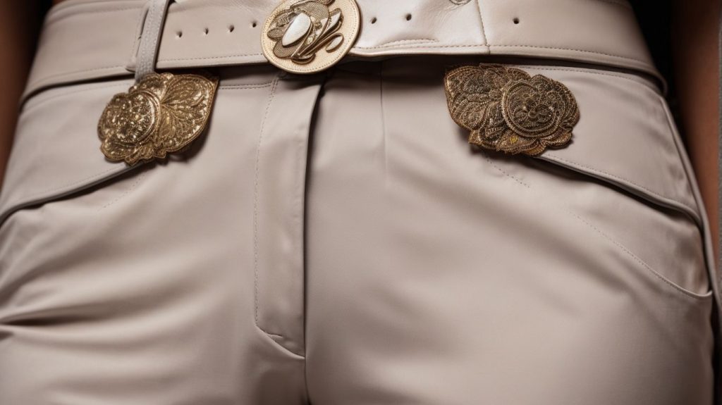 These specialized riding pants uphold the rugged yet stylish essence of cowboy fashion with their durable fabrics and authentic design elements, such as decorative stitching and embellishments.